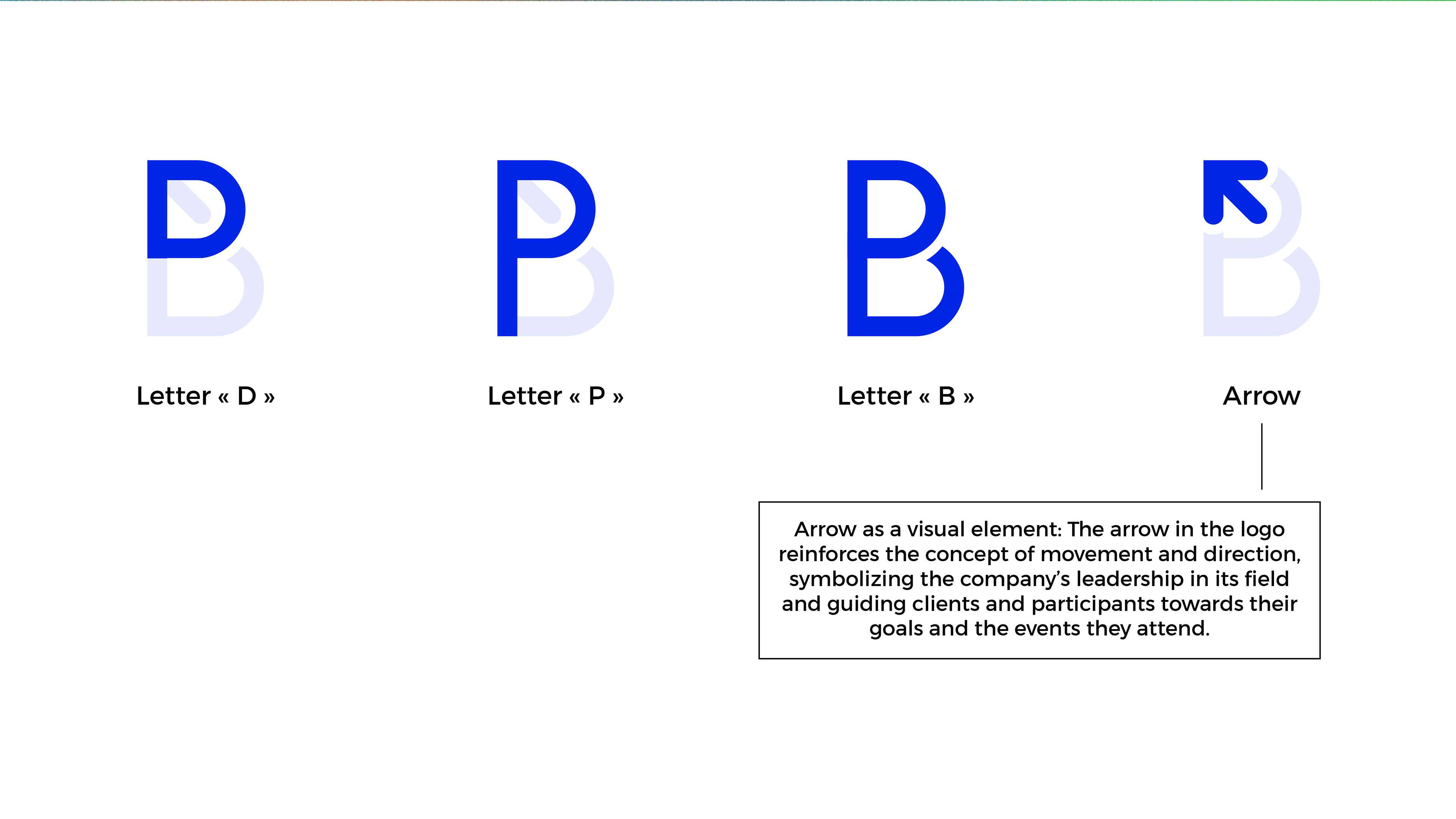 The arrow as a visual element : The arrow in the logo reinforces the concept of movement and direction, symbolizing the company's leadership in its field and guiding clients and participants towards their goals and the events they attend.